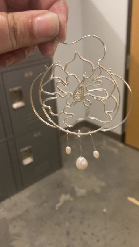 As I get older, I have witnessed and realized the drastic effects of colonization of the Philippines on my culture, identity, and family. Prior to colonization in the Philippines, it was a polytheistic nation, and multiple myths and deities existed in different regions. The concept of Transgenderism was apart of this mythology, seen in Lakapati, the goddess of fertility and good harvest. She was described as an androgynous, intersex, or transgender goddess. Beyond this, before and after colonization, we saw Spanish accounts of Trans Filipino women living among society. The Tansug people believed there was a third gender that were essentially women who were men; they were referred to as Bakla. These trans-women could live society as women, wearing feminine clothing, marrying men, and taking up duties and social status of women. While they couldn’t have children, they were seen as more spiritual and a vital part of their communities. Yet, to the Colonial Spanish, they were a threat. Thus, in the 1500s when Catholicism was introduced, it ended Traditional Filipino mythology and the rights of transgender women in the country. The religious take over of Roman Catholicism changed the way we viewed each other, and restrains the queer identities of many individuals like myself. While the Philippines is one of the most LGBTQ+ friendly countries, we can see that we are only tolerated by society rather than accepted. I have seen this within my own family, and my coming out as trans, through denial. So, I turned postcolonial Crelloa (a large round earring Filipino women wore in the 1800s) filigree earrings into an adaptation of queerness, focusing on genital iconography within the delicate twists, frames, and granulation of these hoops.